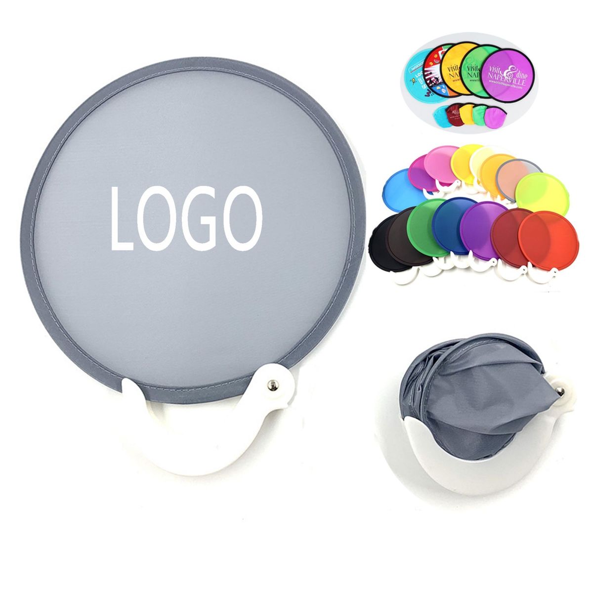 Made of quality nylon with a steel ring and plastic handle. Unfolding size 7.87 x 7.87 inch, a suitable size for guests to comfortably hold, and compact enough for easy transport. Compact size, lightweight, round shape, customize your design. Available in a variety of colors. A great choice for weddings, with options available for both the bride and groom's guests.